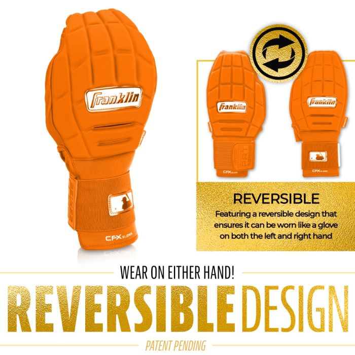 盗塁やヘッドスライディング時の手指の保護に最適なMLB公式スライディングミット。左右どちらの手にも装着できるリバーシブル仕様で、グローブのように着用可能。